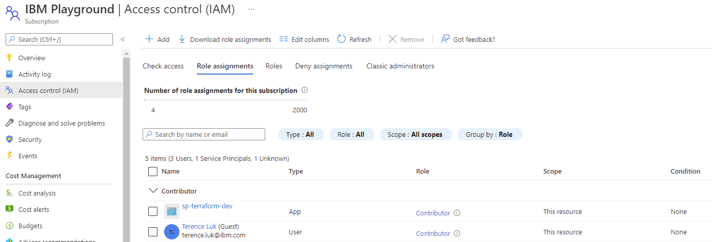 We’ll need to grant permissions to the Service Principal to the subscription that Terraform will deploy resources to. Contributor typically sufficient but there are some configurations such as Resource Locks that require Owner: