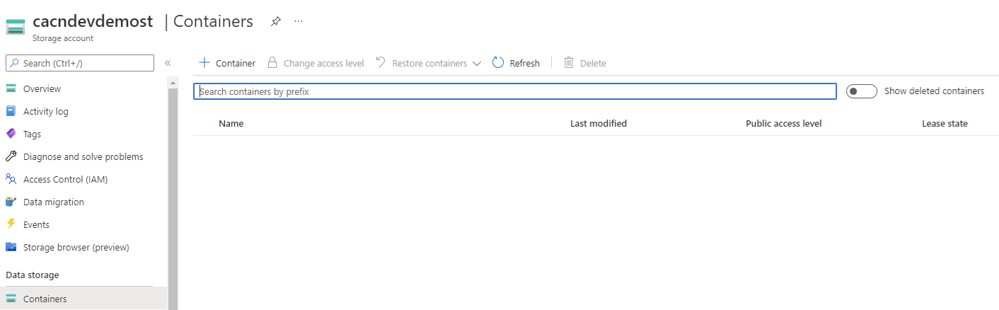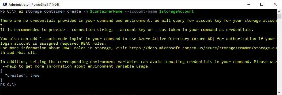 az storage container create -n $containerName –account-name $storageAccount