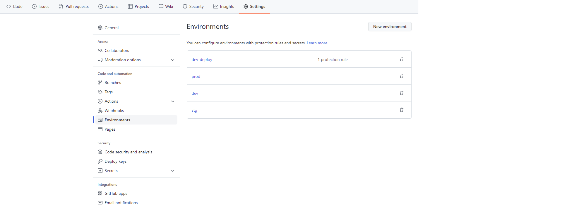 - How to configure different environments in GitHub