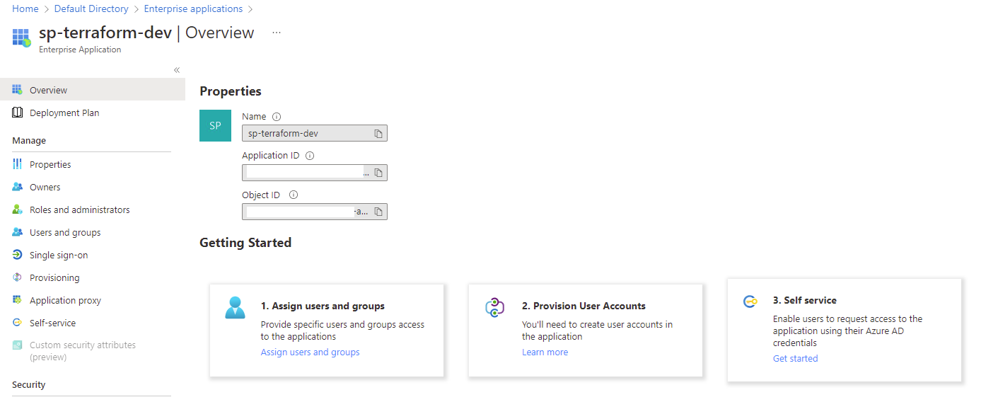 The corresponding Enterprise application (Service Principal) will be created: