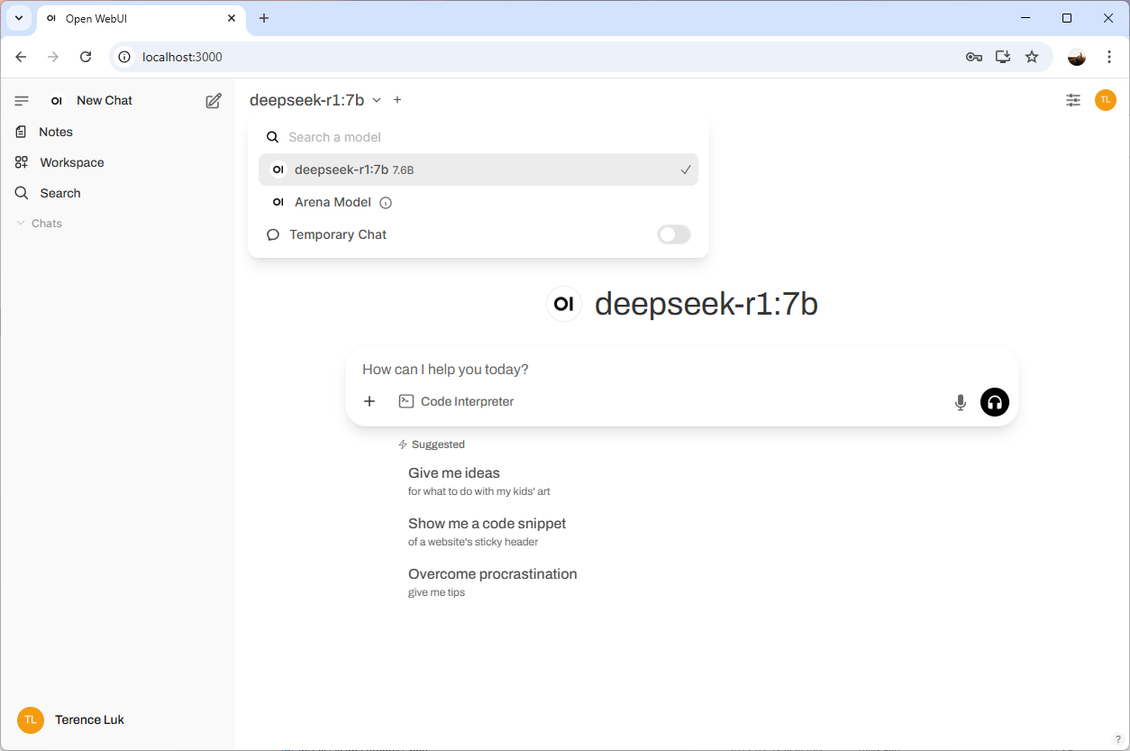 Note how deepseek-r1:7b is already present as I have already installed it with Ollama in my previous post: