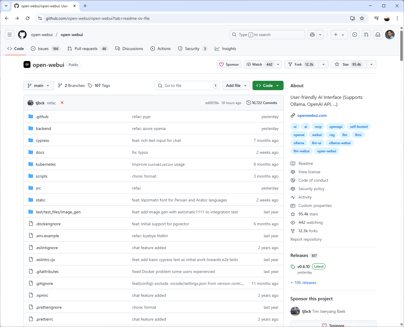 With Docker Desktop installed onto your local device, proceed to navigate to the following Open WebUI GitHub page: https://github.com/open-webui/open-webui: