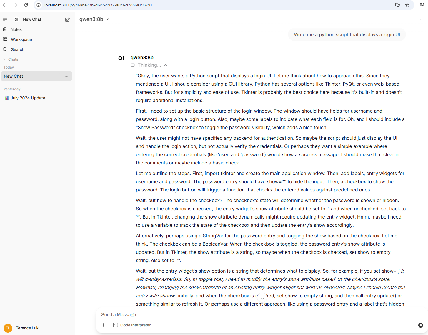 I hope this provides a good walkthrough of using Open WebUI and Ollama to run local LLMs.