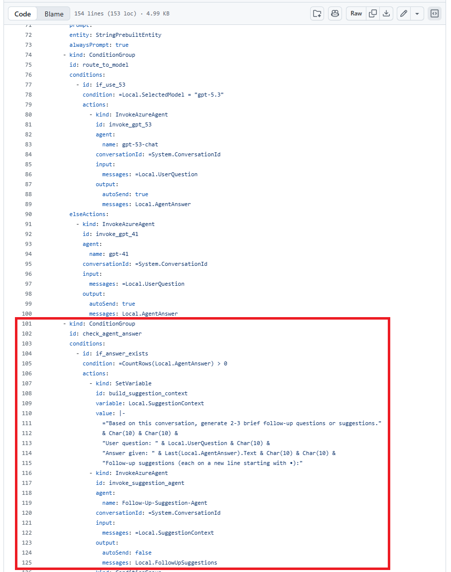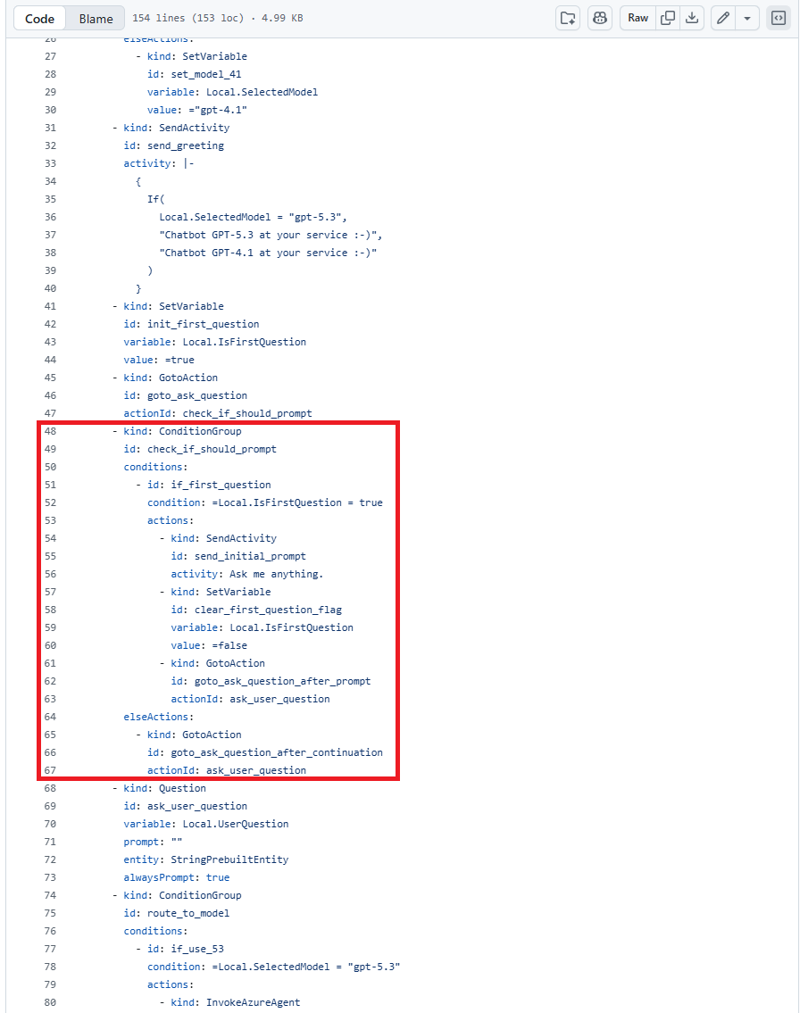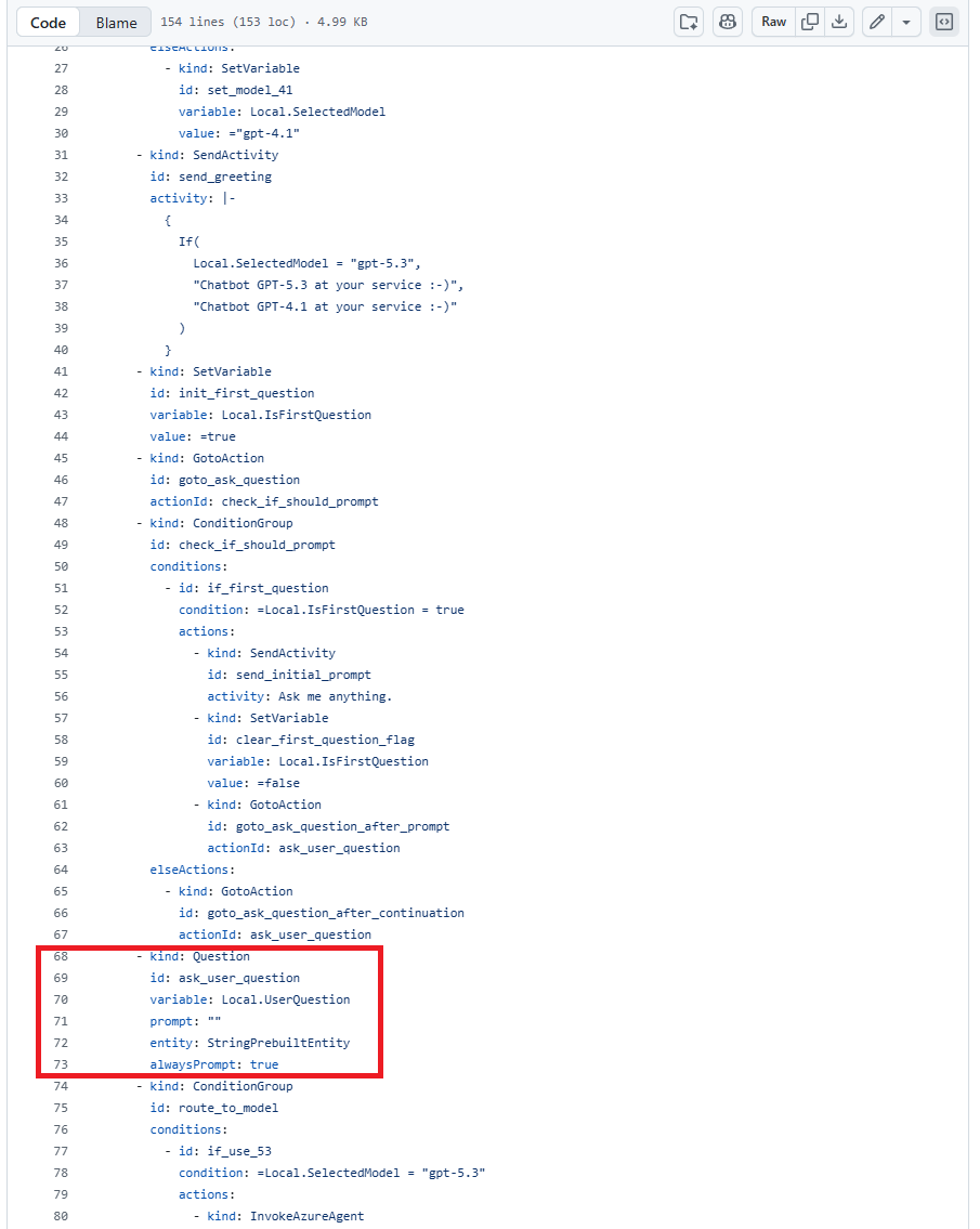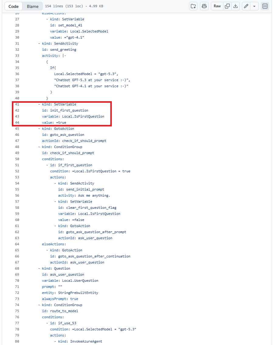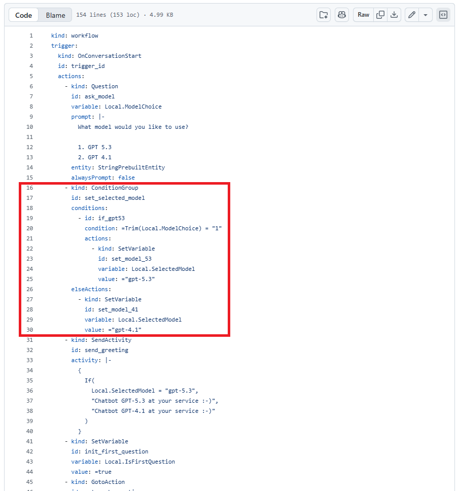 Let’s start by looking at the full workflow configuration here in my GitHub repo: https://github.com/terenceluk/Azure/blob/main/AI%20Foundry/Workflows/Chatbot-Model-Selection.yaml