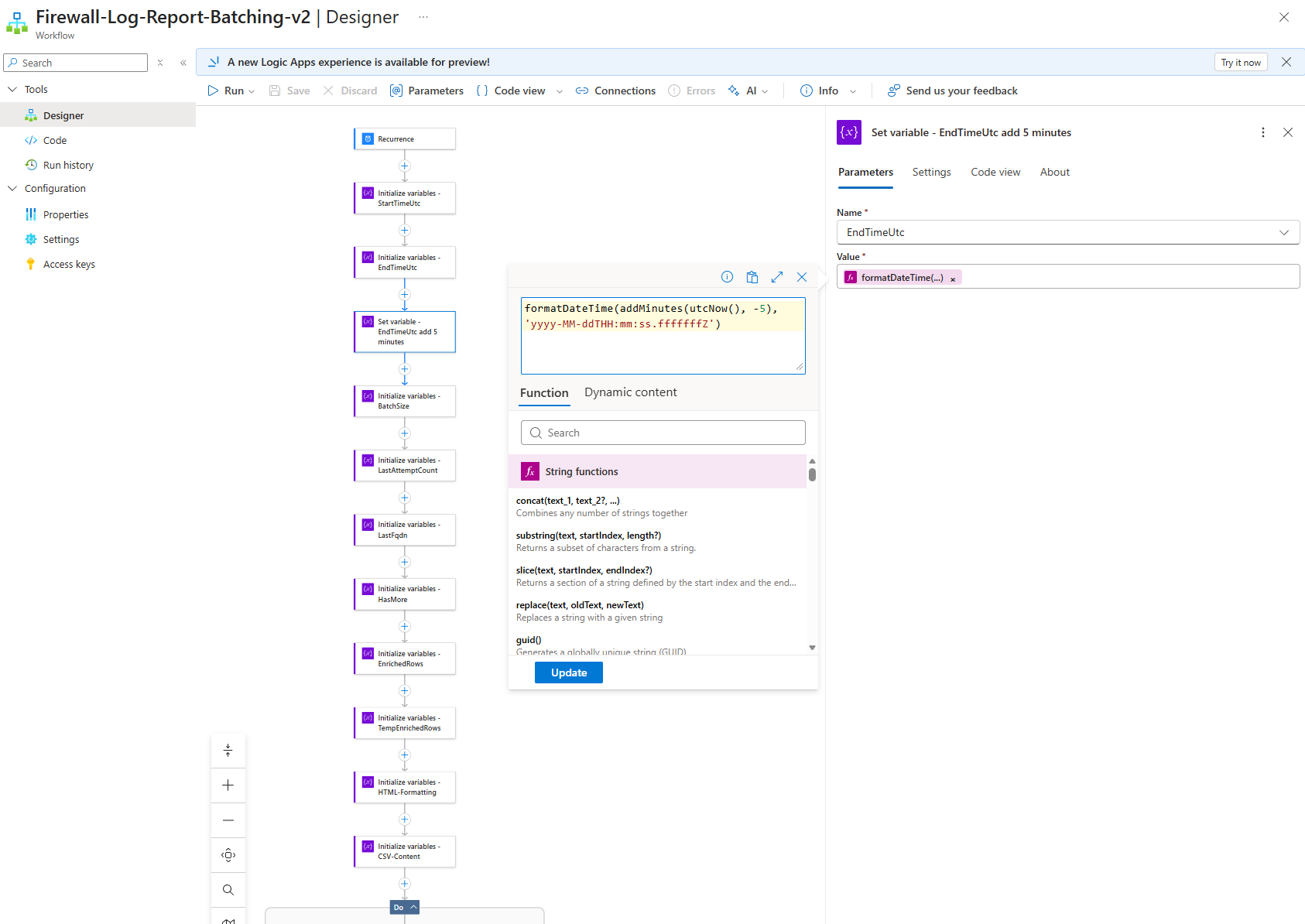 The code for this Logic App can be found in my GitHub repo: https://github.com/terenceluk/Azure/tree/main/Logic%20App/Batch-Processing-Firewall-Logs-with-AI
