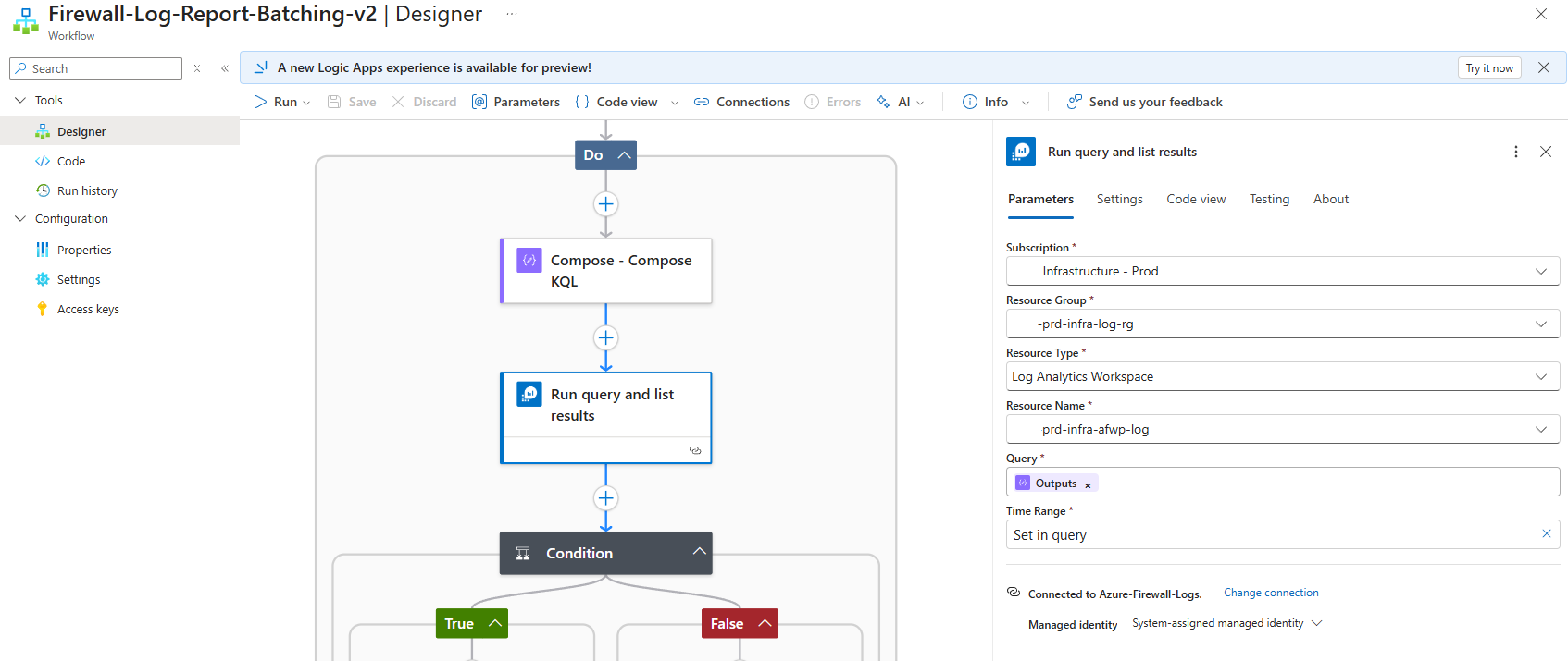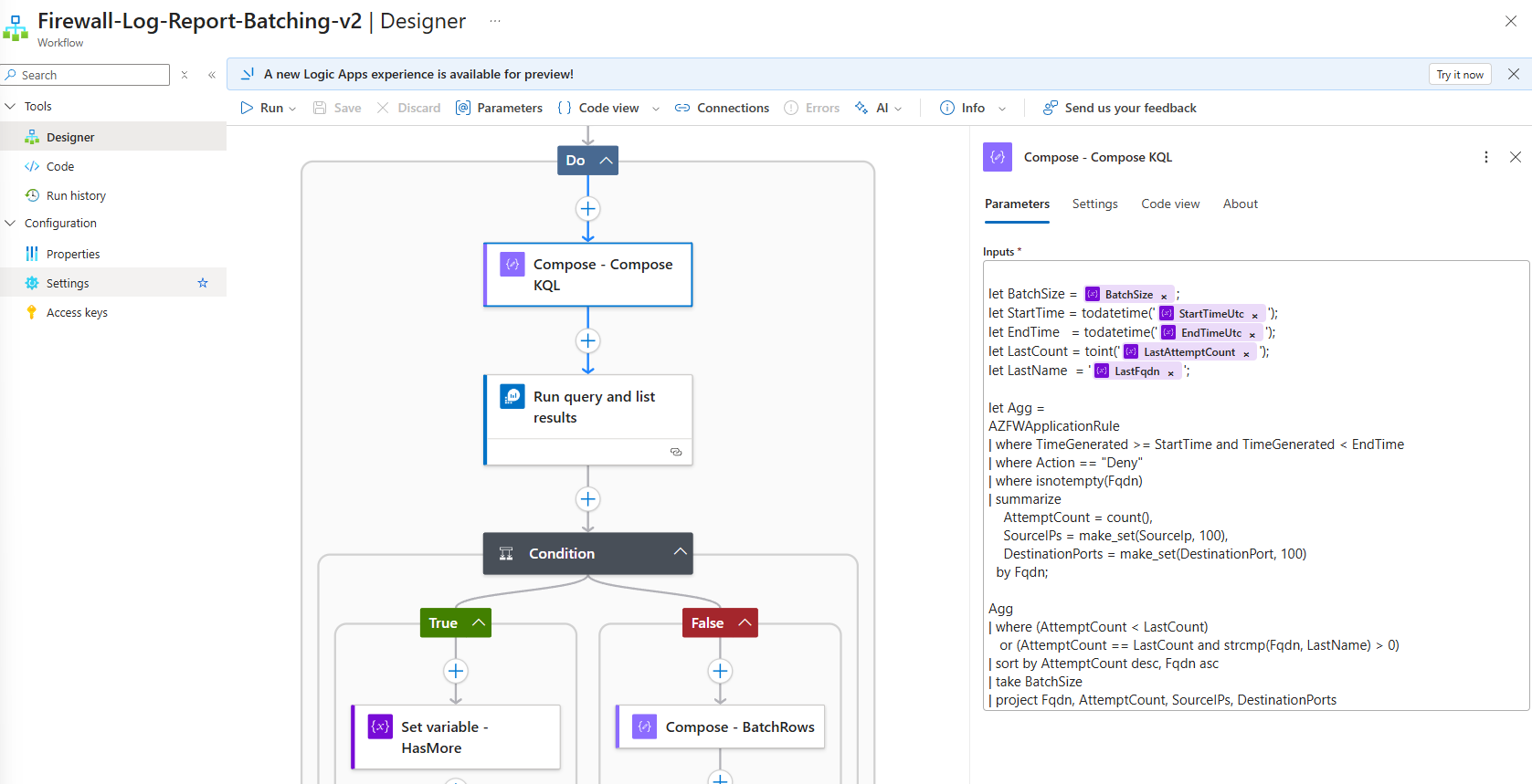 - Run the parameterized KQL query against Log Analytics (Batching Logic with KQL Pagination): https://github.com/terenceluk/Azure/blob/main/Logic%20App/Batch-Processing-Firewall-Logs-with-AI/Query-Firewall-Logs.kql