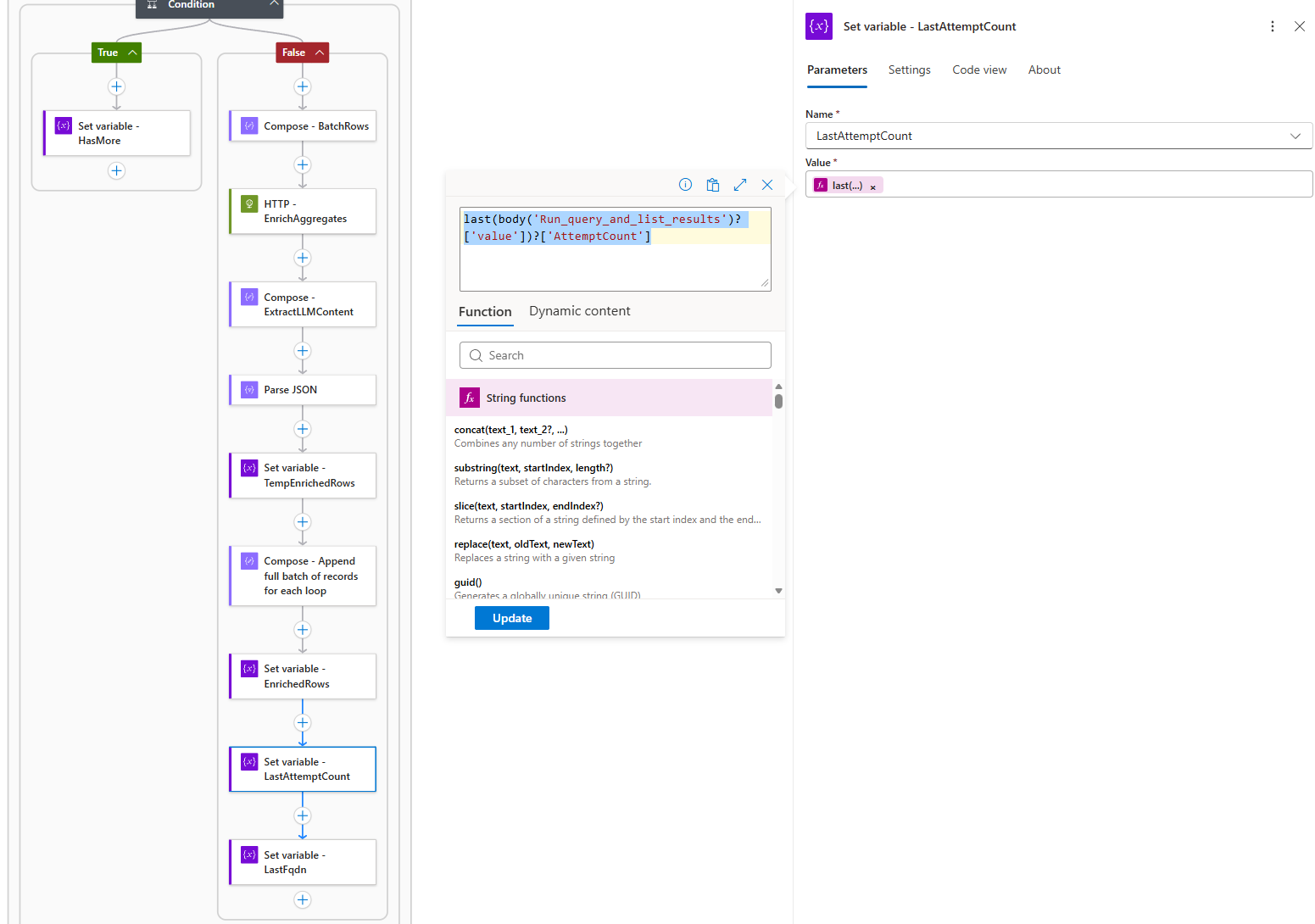 LastAttemptCount,LastFqdn)last(body(‘Run_query_and_list_results’)?[‘value’])?[‘AttemptCount’]